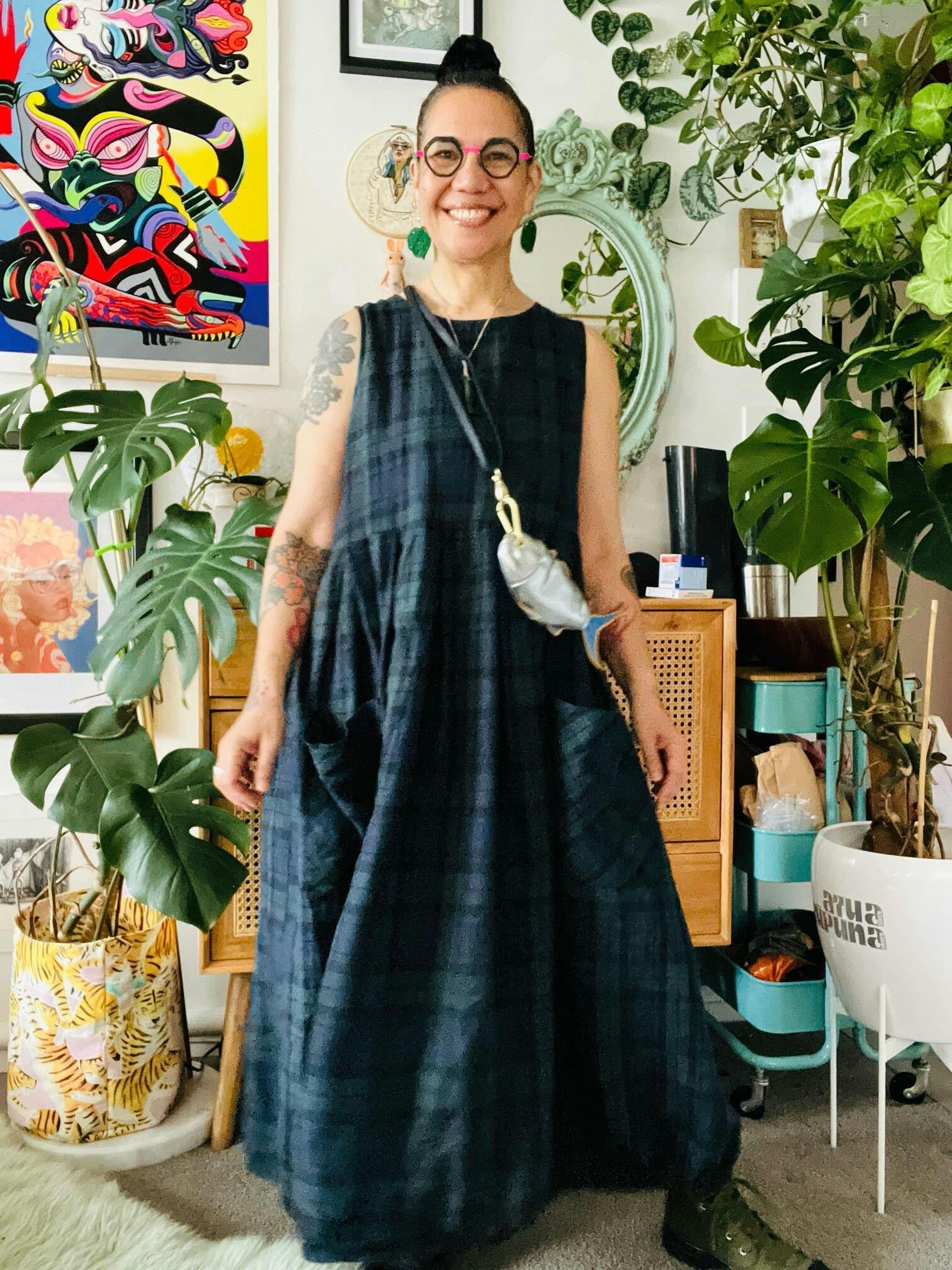 This 100% linen dress is a perfect blend of comfort and chic style, crafted from luxurious French Flax linen for a soft, breathable feel. Sleeveless and designed with a flattering drape, it falls below the knee with a tulip hemline that adds a graceful touch. Featuring deep side pockets and elegant pleat detailing, this dress combines practicality with sophistication. Designed in a beautiful blue plaid pattern, it’s the same stylish cut as the beloved Sartène linen summer dress, offering a fresh twist on a classic favourite. Ideal for warm weather or layering with your favourite pieces.